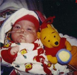 Well, here ya are!! At the second page of my photo album!! Boy, has it been a wild ride or what!!!! I bet there were a lot of us who never thought we (and "I") would get this far!! But we have had it pretty fortunate so far!! Keep your fingers crossed that this reflux thing goes away! Here is a pic of me with my "Buds"!! I promised them a spot on my page and you know how tempermental frogs and teddies can be if you don't deliver what you promise IMMEDIATLY!! So, here they are!! We usually hang out together at the krispy treat stand when no one is looking, or take turns playing 'hide and seek'! They are a pretty cool couple of friends!! And ya know, good friends are hard to find now-a-days so I gots to keep them happy!! Ya know, I'm not sure WHY they say "good friends are hard to find" cuz' me and my family have found LOTS of them, right here on the Internet, which, I might add, is wayyyyyy kewl!! Well, we're gonna go find something to munch on, so we'll see ya all later!!