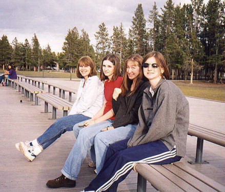 This is (from left to right) my mommy, me (looking a bit unhappy), my sister Serita, and my sister Candace. We were waiting for Ol' Faithful to go off at Yellowstone National Park in Wyoming.