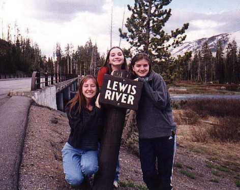 This is (from left to right) my sister Serita, me, and my sister Candace standing around the Lewis River sign in Yellowstone National Park in Wyoming. (Don't we just look so happy to be there?) haha.