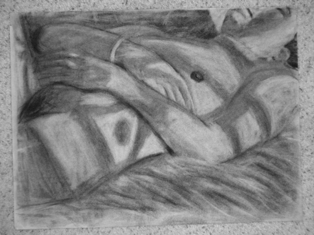 This is one of the compositions i drew of a nude model where she had an image cast onto her