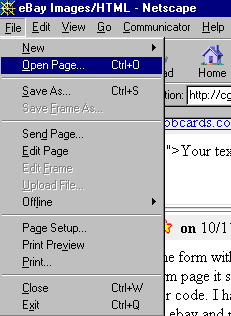 | After it is saved, you need to open it with your browser. Minimize notepad for now and click FILE - OPEN (or OPEN PAGE) at the top of your browser. | ![]() |