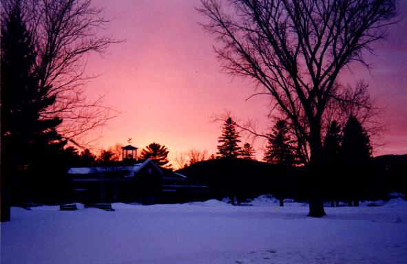 Sunrises and sunsets in the mountains up here can be wonderful. Library with a MILD winter.