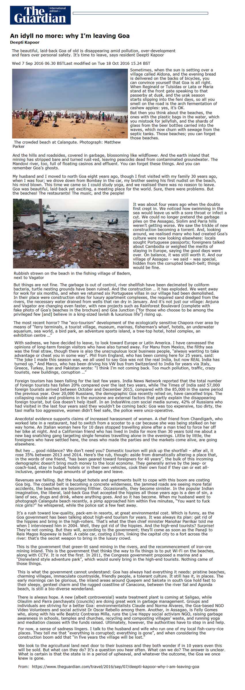 Article about Goa's Garbage problem by Deepti Kapoor.