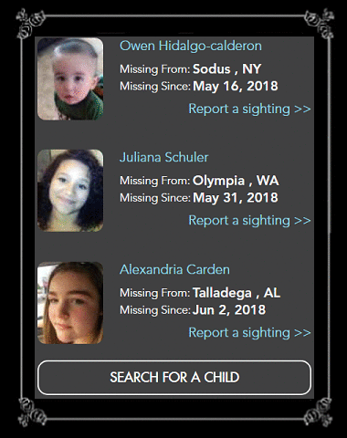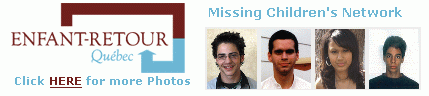 ![]() Compliments of Yahoo.com Child Abduction Resource Center - global resources for parents of abducted children. Parental abduction, international child abduction, and missing children resources. Child Find Canada Online / En Direct - pictures of missing children and a wealth of child safety information. Illinois State Police - Missing Children New York State Missing and Exploited Children Clearinghouse - searchable database. |