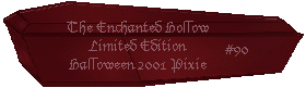 Hee Hee Hee Hee!!!!! I hope you had a howlishly good time!!! Your Still Here? I see you've found my Special Halloween Pixies I have promised them a good home here in my 'gardens' You can look, but...you can't touch!! If you wish to adopt a special pixie for your garden, please visit the Webmistress at the Enchanted Hollow... I'll be VERY UPSET if you try to take my pretties.... The link is provided, so... Get Your Own!!! Hee..Hee..HaHaHaHaHa