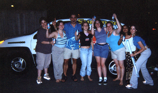 The kickass party I talked about a few weeks ago that was crashed on by the Molson Dry Party Patrol is finally on the internet. This is the pic that they posted, and I had to add it to my page of course. After all it's a great memory of an amazing party and a not so bad pic. ;-)