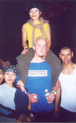 Me on my knee's Chillin with 2 raver gurlies i cant member there names :( sorrry but heh lo0k im the same height on muh kneez :P