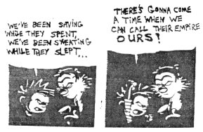 8. Do you feel a revolution will or needs to occurein the U.S.A to stop the growing difference in the social classes? Maybe not a revolution, but definitely something. As it stands now, we're headed towards a world that is part Orwell's 1984, part Huxley's Brave New World. I'm begining to think that nothing short of a catastrophic event (total revolution, a nuclear holocaust, or something of that nature) will change anything. Unfortunately I don't think a revolution is in the foreseeable future. People are just too complacent.