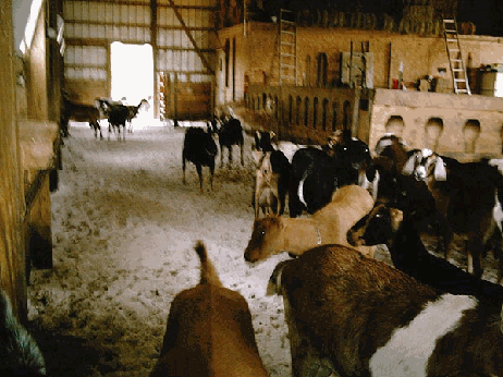 View looking in the goat door facing west now. At the far end we have a small pen with a lot for junior kids.