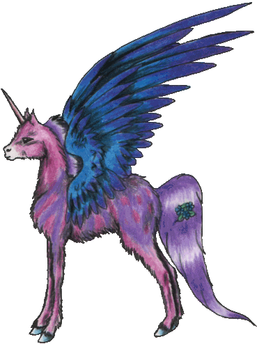 loves her. She's so adorable." "Do I have to come out Fali?" a soft voice that could only be described as angelic replies. Fali says, "Yes, dear.. we came to see you. Come on.. this visitor won't bite, and neither will it make fun of you." "Oh, okay." A small form appears from behind a tree. She's a small winged painted unicorn...but unlike the others she had fluffy fur. And her wings...unbelievably beautiful. You stare at her in open mouth awe. Fali gives you a polite bump. And you close your mouth and try to stop staring.