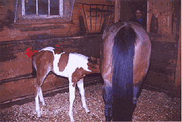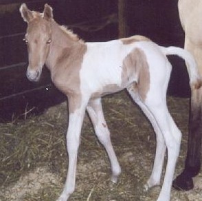 Palamino paint out of a buckskin quarter horse mare, foaled May, 17, 2001. Picture taken apprx. 12 hrs. old