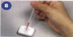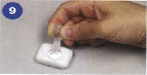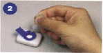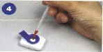 ![]() 白い検査の皿から青いフィルターを取り除いてください。3滴の緩衝液をその皿の中央に直接加えてください。 |