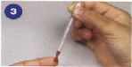 ![]() ピンで人差し指の先を刺してください。血の流れが増えるようにやさしく指を押してください。血を吸い取るためにピペットを使ってください。 |