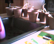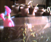 These are the seedlings in my mini-greenhouse : sweet basil, cherry tomatos, lettuce, watermelon, eggplant and snapdragons. |