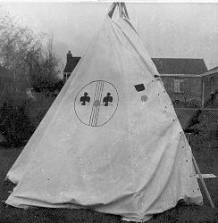 Rollie adopted as his own symbol a Cheyenne beadwork design found on the ceremonial shirt of a Cheyenne brave. The design (above), in red and blue, on a white background, adorned his belt buckle, his bolo tie and the tiles on his kitchen table.