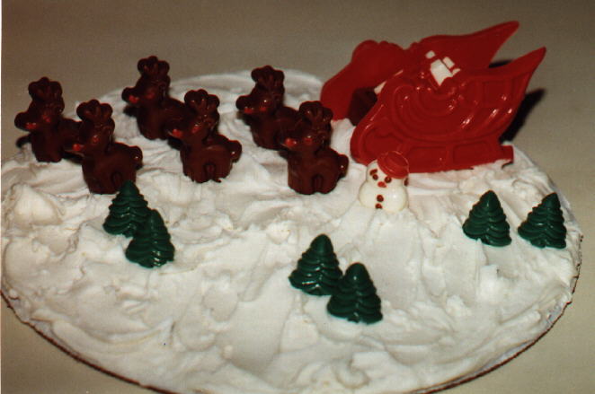 Item X23 $25.00 Comes with 1 chocolate sleigh, presents to fill the sleigh, 8 bite size deer, 4 bite size candy canes, 4 bite size trees. You assemble on a board, cake, brownies, large cookie ect. Great centerpeice.