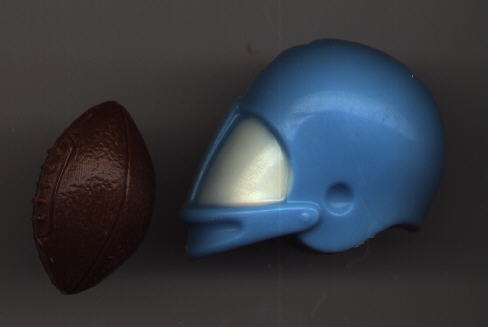 These treats can be made in your school colors. 20 footballs & 10 helmets per pd. Helmets are much bigger than the footballs. A 1 pound box has approximately 30 pieces. 1/4 pound box $4.95, 1/2 pd box $9.95, 1 pd box $18.95. $2.00 per 4 pack. Item SP 106.
