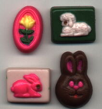 THERE ARE APPROXIMATELY 35/40 PIECES IN A POUND OF EASTER PIECE CHOCOLATES. The eggs (shown above) can come in plain, krispy, malted milk, and nuts. Large eggs can also come in caramel, peanut butter, raspberry, orange, and needham (extra charge for filled).