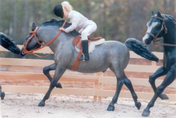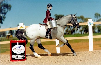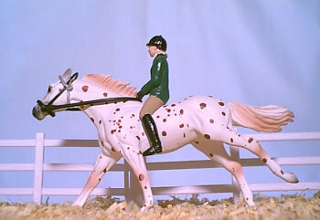 Macha Tempest Treasure (MI) Holding on for dear life while attempting to take the lead in an all-Appy race at the county fair |  Treasured Spider (MI) Bareback: Standing calmly to be mounted |