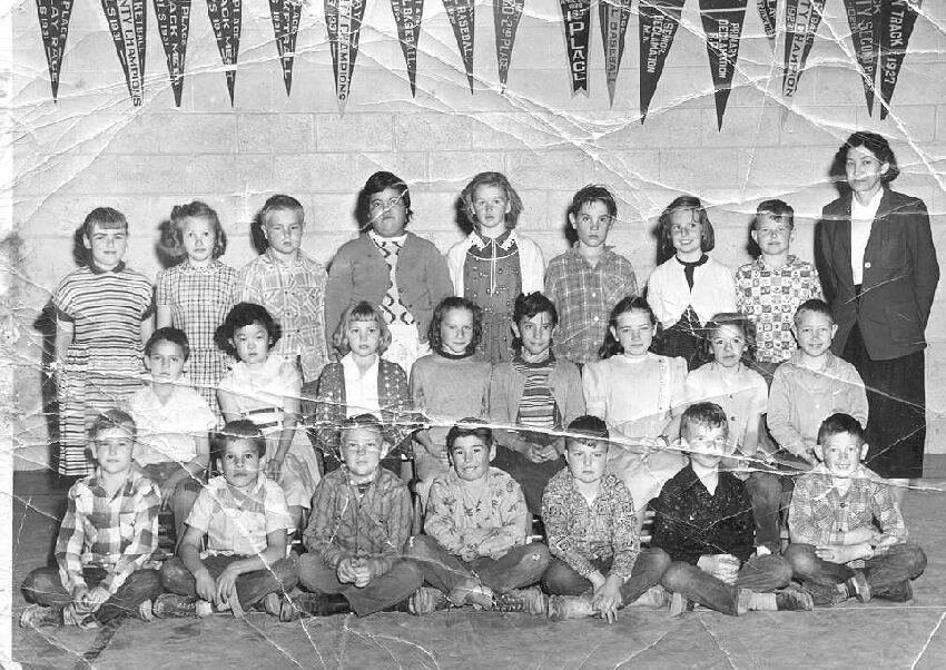 Seated left to right: Bobby Poole, Cip or John Garcia, Ted Retchloff, another boy I can't name, Gary Spady, Ronnie Martin and Randy TuckerMiddle row: Elmer Martinez, Cheryle Maruyama, Karen Morlan, Alta Mae Huff, Carmin Gomez, Earlene Moon, Lorna Lou Shelton and Chuck Bourne
