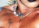 This is the tattoo on Brian James's right leg. The cross has his wife's name and his kids initials. He got this tattoo with X-Pac at Venice beach.