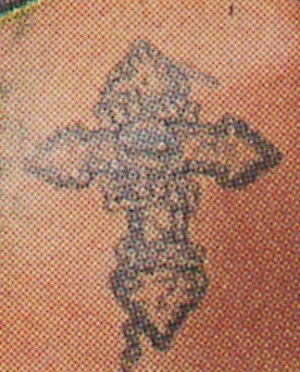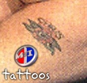 His arm tattoo appears to be a flower of some sort. He also has tattoos on his ankles/calves.