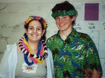| Rachel and Mallory not ready for this pic, haha. Kirsten showing her> school spirit! Go Kirsten!! Below is Ian and me on beach day. awww, how cute. hehe. Yep, we deff. were working hard in science that day!! |