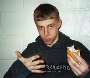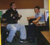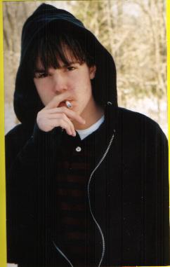 | Above is Nate and Me during lunch.. It's all innocent, it just doesnt look that way.. lol. Over here is Nate R. smoking a butt over at his Aunt Karen's house.. Taken in winter of this year. IT WAS COLD OUT! |