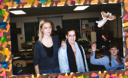 | Above is Dakota and Me during Web Design. That class was SOOOO fun. hehehehehe. :) Melissa, Fred and Shawna during one of the boring french movies. Yeah, like we were watching it, I think not! LOL. It's a thought though.. But No, we weren't watching it, I dont even remember what it was about.. Whoops. Brett slept through that one.. lol. |