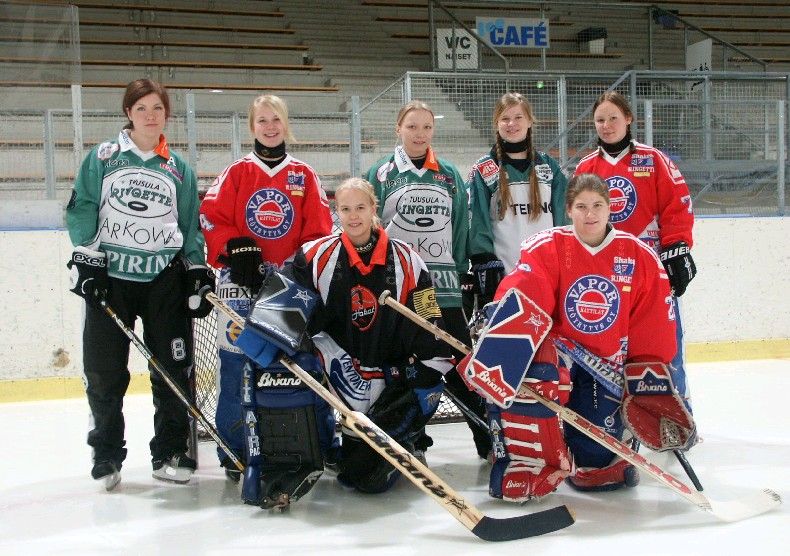 From left : Heidi, Liisa, Anu, Mari and Sari and goalies Minna and Eeva! (Only players, who are always in practises and goes in Kerava highschool.) |
