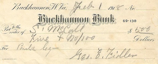 In 1988 while scrounging around in the mess of papers, letters, and trash scattered about the floor in the farmhouse (long-vacant then) we found this $5.00 personal check written in 1918 by my great grandfather George Fidler, for "Paul's Leg." Presumably this check had paid for a doctor visit, maybe for a broken leg or perhaps stitches...? (The Paul no doubt being my great uncle Paul M Fidler.)