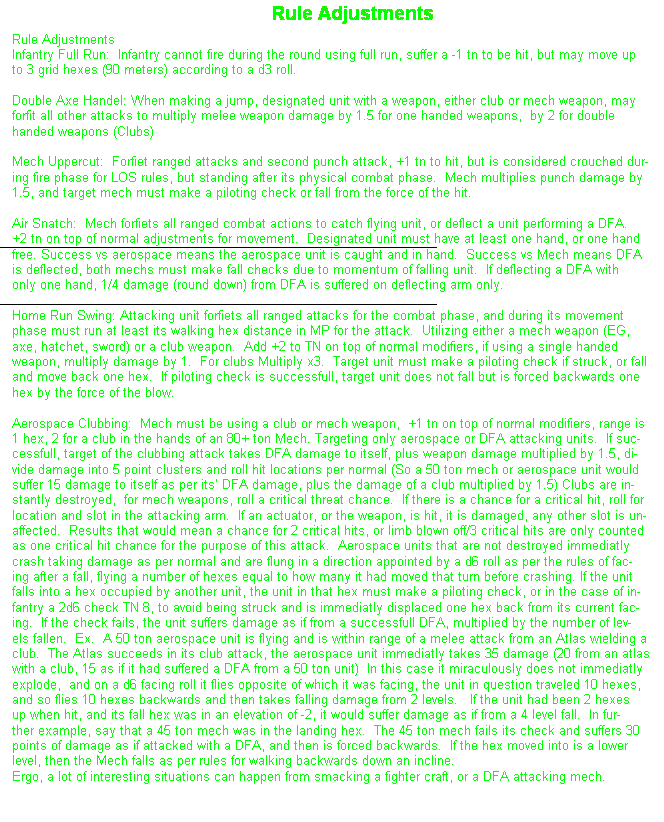 This Website is based on the life and adventures of four PCs in a mixed game of MechWarrior/Battletech, using the fourth edition Battletech and 3rd Edition MechWarrior RPG rules.