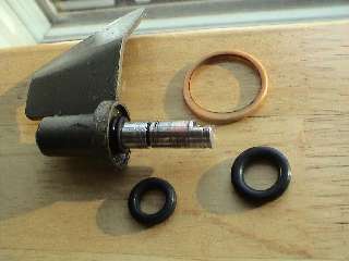 The Leak Fix - Step 4 This is an "after" shot with the O-rings in place. Note you cannot see the large O-ring since it is hidden below the medium. I suppose if you could find an o-ring fat enough you wouldn't need the large and medium. The rings should be pretty well packed into place. The medium must be snug. |