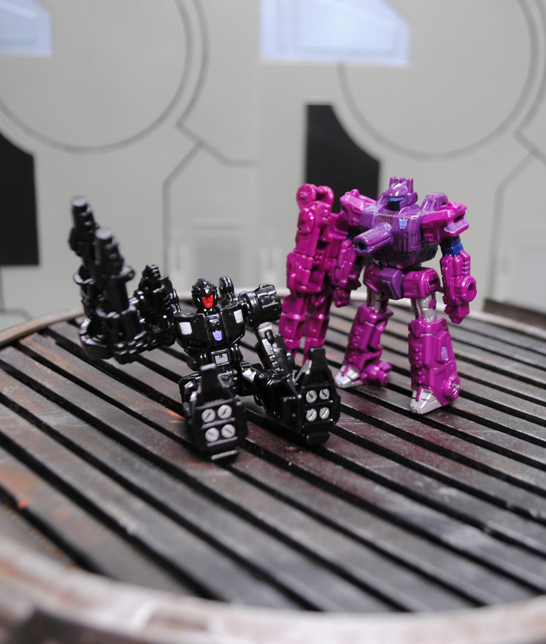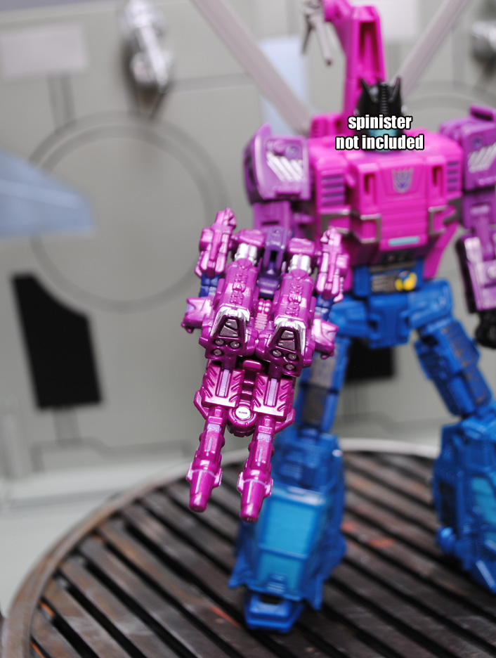 Some kinds of plastics are extremely resistant to paint no matter what you do. These are usually toughened waxy plastics/superhard plastics like polyoxymethylene that make up parts of a figure that could easily be stressed if made from the usual pvc or abs. The limbs of the Transformers Siege Battle Masters are made of this stuff and you need to color them, so what do you do? It's RIT DyeMore for synthetics to the rescue! Mix half the bottle of dye with a cup or so of water, boil the liquid on med to high heat just so you get a gentle rolling boil and drop your parts in. I like to suspend mine in a strainer so I can 'lift and look' to check the color. In under a minute the pieces will start to be dyed with a color that won't rub off! The longer you soak them the deeper the color. Here I created Spinister's Targematers Hairsplitter and Singe using the DyeMore Pink, violet and Graphite dyes. They were then primered with Bulldog Adhesion promoter, painted using Testors lacquers, and sealed with Mr Hobby premium spray sealer. Seeing as how these two are impossible to find outside of the $200+ set, why not make your own? Want to own one of my customs like this one? Head on over to my *Ebay Auctions* this week to see what's available.