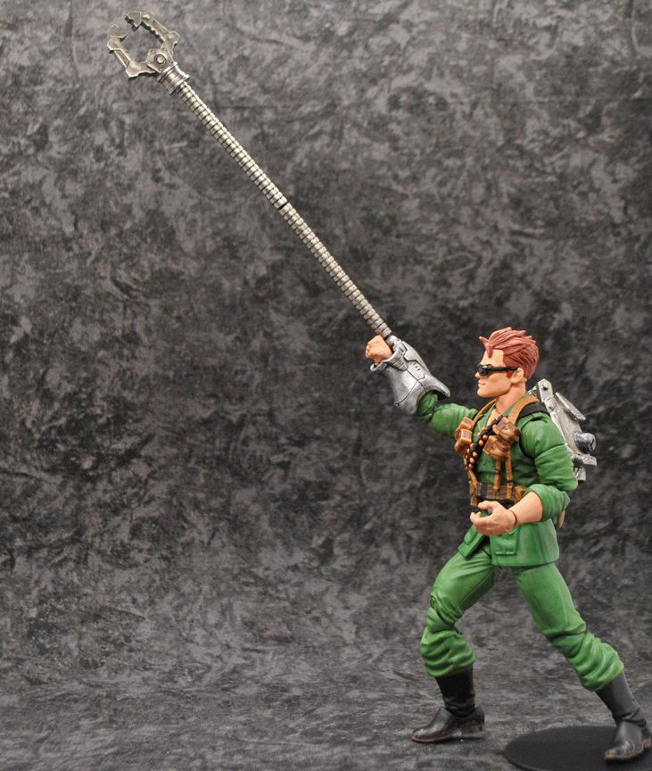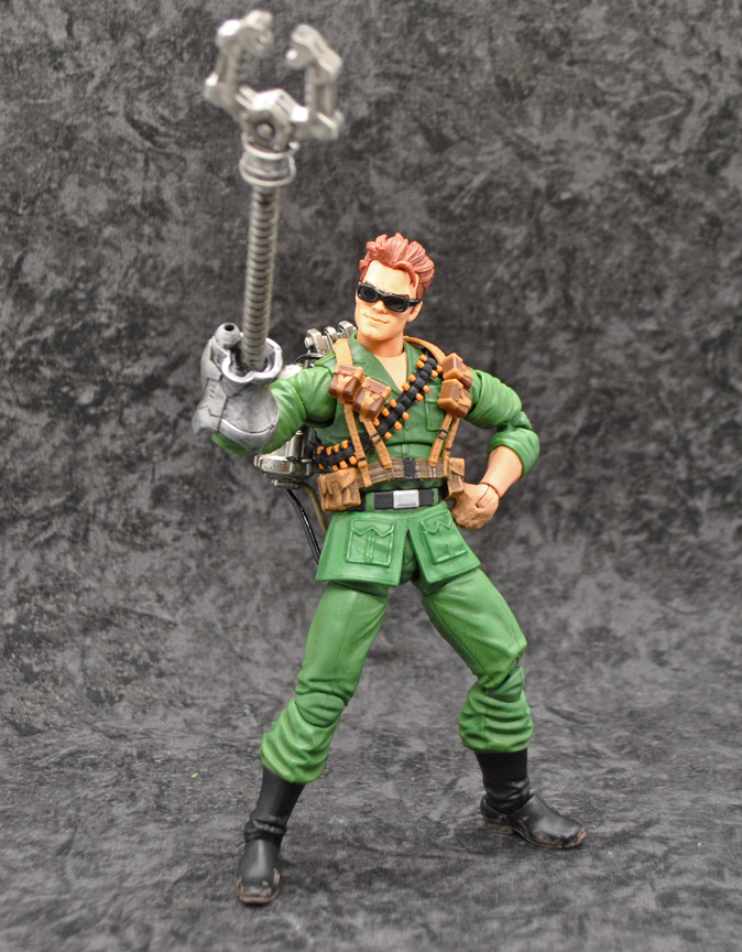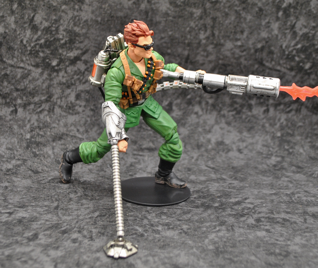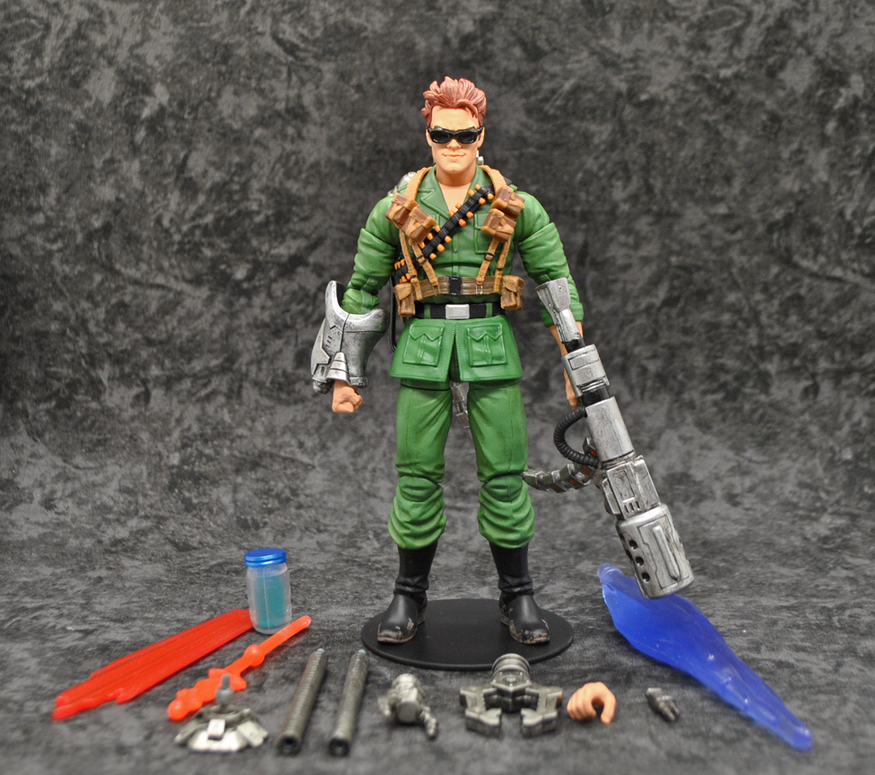 Swinging into action it's your friendly neighborhood... Bionic Commando! Here I've recreated Nathan Rad Spencer right based on his NES sprite right down to his muddy boots. He was made using a Savage land Prof X body, Damion Hellstorm head/hands, Ultimate Iron man forearm, machine man extendo-arms, Wonder Man's jacket skirt, various star wars/Aliens web gear/hoses/belts, a Fortnite scientist backpack, and various parts to make his gun. Bionic Commando has different claw attachments like his regular claw, item pickup claw, and magnetic swinging grapple. He even comes with a radio (which he never uses in the game, you always have to use a terminal?) and different blast effect upgrades for his gun! Want to own one of my customs like this one? Head on over to my *Ebay Auctions* this week to see what's available.