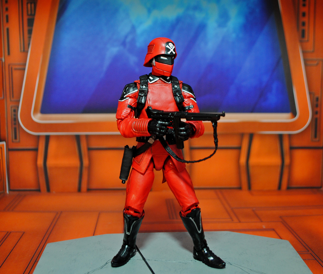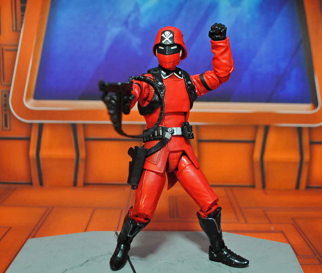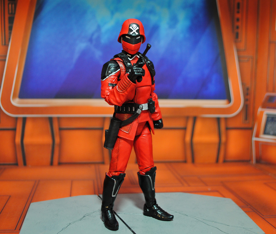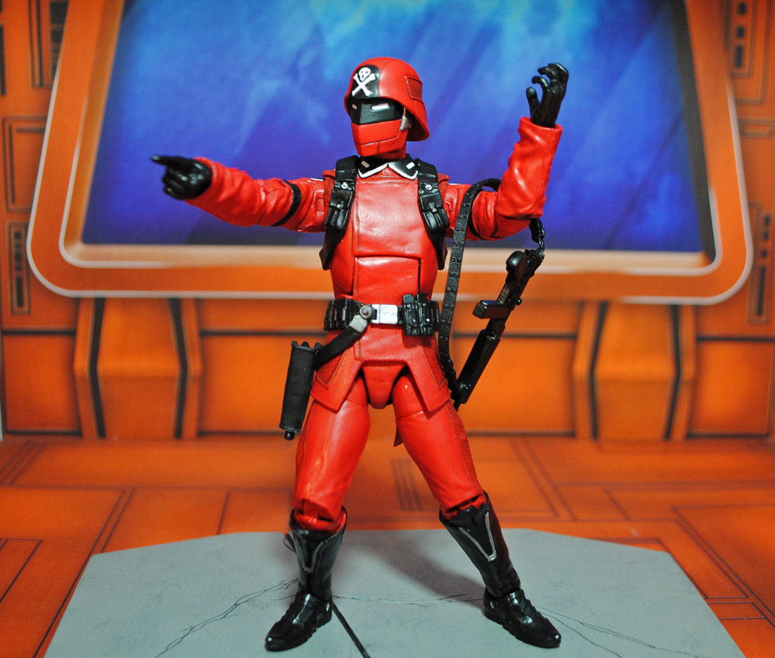 Here's a baddie that originally debuted in the Palitoy Action Force line, the Red Shadows Trooper! This one was created in 6" GI Joe Classified scale using a Cobra Commander body, ML Starlord arms, modded Civil Warrior head, and Cobra Infantry helmet. Various details like the tiny skull and crossbones and collar tips were sculpted using Aves Studios Apoxie Clay and his belts/harnesses were fodder from other figures. I really dig the almost-Crimson-Guard look of these guys and need to make Baron Ironblood now! Want to own one of my customs like this one? Head on over to my *Ebay Auctions* this week to see what's available.