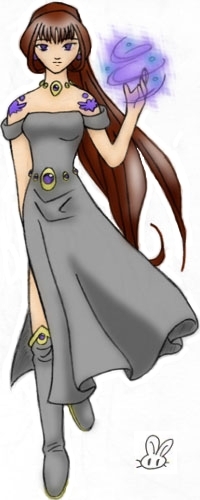 Heh, well, this is Karla the Grey Witch. Please don't sue me, Ryo Mizuno!! Anyway, this character is a sorceress who wishes to maintain the balance between the powers of the faery realm, and also prevent the Queens from doing mean things to the humans. This pic was colored on the school's computer, using Adobe photoshop, which is supposedly the best photoshop program you can get. I, for one, feel that it is highly overrated, and believe that I could have done a better coloring job using my home program, Corel Photopaint.