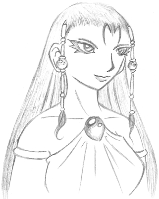 There she is... the source of suffering of the realm of faery. The Lotus Queen, hssssss!! I think... her eyes... are super cool. And those strings of beads in her hair.