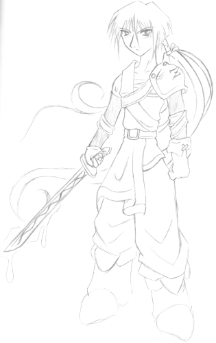 Before I say anything else, I'd like to let you know that I'm already aware that just about everything in this picture is horribly out of proportion, so don't hold it against me. As for the subject of this... well, see, I've got this cool idea for a Mega Man and Dungeons & Dragons crossover... thinking of what classes that Mega Man & Friends should be is half the fun. I've decided that Zero should be a paladin, what with his righteous swordsmanship and stuff, although he doesn't posess any healing magic... and he isn't looking very paladinny in this picture, is he? His sword is dripping stuff 'cause if a weapon has 2d6 Acid Damage or higher, it glows green. Get it? Oh well, anyway, Blues is a ranger, Forte is a rogue, Axl is a druid, Cinnamon is our cleric, and I guess Mega Man will have to settle with being a fighter, until I can think of something better suiting.