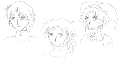 There they are, the beautiful FOmars of Phantasy Star Online Episode 3. Break on the left (why do verbs always make awesome names?), Relmitos on the right, and my character, Shuichi, in the middle. Strange Forces are at work... (I got a million of 'em)