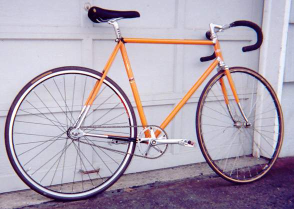 But tho a fixed gear may not be as “easy” to ride as its geared brethren, it is much more fun. It gives the rider a subtle form of control -- “resistance braking” -- that geared bikes lack. It has better traction in foul roads, and it gives you a feeling of accomplishment when you top out on a steep hill, look back and say “wow, I climbed THAT?” Granted, this can be said for climbing any hill on any bike. But on a fixed gear it feels extra special.