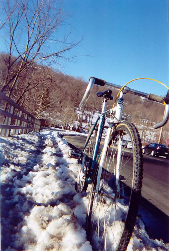 In the northeast coast of the U.S., anyone riding a bike is an unusual thing. New Jersey has the sad distinction of being one of the most densely populated states in the union; but, it seems that the census people got their words reversed, for we also have a somewhat "dense" population, who drive huge monster SUV's more suited for the genuine Outback than the Outback Steakhouse. This makes for very nervous cycling experiences until you get used to the massive boxes on wheels wizzing past at Warp 9. And it is even more unnerving when they have cell phones. Oh yes, we have a law against that now, but we also have a law about using turn signals. It seems it seldom works to acheive the desired result. The result of all this is that so many people feel used to their cars, the idea of riding a bicycle for any distance, let alone in the cold, is an alien thought. On the other hand, out of the cyclists out here, only a handful are fixed gearies. Again, not a surprise; the hills tend to discourage fixed gear cycling because even some bicyclists frown on having no choice of changing gears when the going gets steep. However, what most people don't realize is that a fixed gear can make those hills fun again.