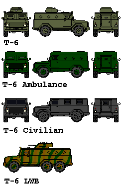 VARIANTS: Ambulance with higher roof and no turret, Civilian with windows and no armament or firing ports, Long Wheel Base with dual rear axles (6x6)