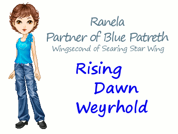 Although Ranela is no longer hiding her sexual orientation, she felt that it would be a good idea to move to Rising Dawn Weyrhold when she was given the chance, since this way she would be shoving her preferences in her mother's face, so to speak. She feels that it will make her mother more comfortable if she doesn't have to worry about what her friends will think of her daughter, and this is really the only way they're ever likely to be comfortable with one another. The move was also good for her in another way, for she was promoted to a Wingsecond of the Searing Star Wing. She'll work hard for her Wingleader and Wing, and since she's such a responsible and steady person, she's a good choice for such a position.
