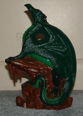 This dragon is one that I did not do for any of my characters. This is the Green dragon named Amaranth who is bonded to Terressa's best friend Kalen. I sent this to Stephanie, who writes for this character, as a Christmas present, having asked her what Amaranth looked like quite some time earlier. But before I sent her, I made sure to take some pictures of her so that I could put them up here on my webpage, and here they are. I think this dragon turned out well, and she was very interesting to paint.