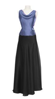 This is the combination that we fell in love with at David's Bridal. It is a sleeveless taffeta drape neck top in Peri paired with a black organza a-line skirt. |
