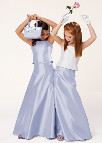 Slight change in plans - the original BM dress didn't quite work out for Caitlin and Allison, so they'll be wearing this cute two piece dress, all in periwinkle, with a black ribbon around their waists |