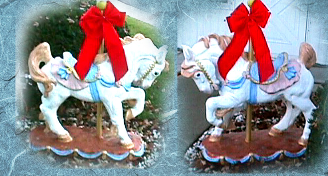 I collect carousel horses andthis is my pride and joy...a concrete horse outside my front door.