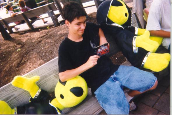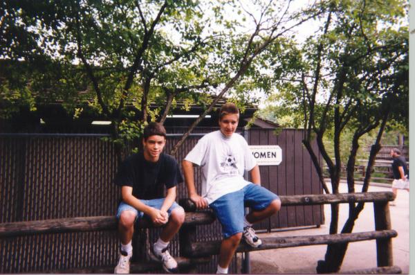 That's me one the left in the black and thats my friend Paul. We are waiting for some friends at Kings Island. 8th grade class trip.