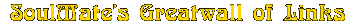 Just a quick note from the creators of SoulMate's GreatWall of Links... This site was created a few years ago and since then our site has under gone a few changes; one being, the developement of SoulMate's SuperFKey which contains all the same links as the Greatwall of Links.. For that reason, we have decided to eliminate this site and maintain the SuperFKey which currently has 46 catagories and well over +1600 LINKs that would direct you to over 250,000 great LINKs. If by chance, we had a Link here at the GreatWall and it was not transfered to the SuperFKey, we would be more then happy to add it at the SuperFKey.. Please send an email to us at... wanpi1@webtv.net .... and within 24 hours your site will be added.. If you had the Greatwall bookmarked at your site.. we would hope you might consider adding our popular SuperFKey in its place: The redirect addy for the SUPERFKEY is: https://www.angelfire.com/mi/SoulMates1PlayGround/2test.html Thank you for your continued support of SoulMate's PlayGround.